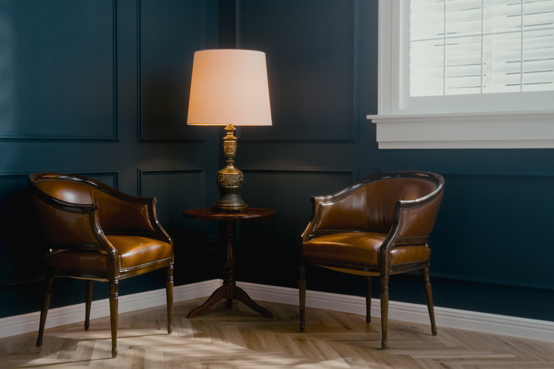 暖炉 / 統一感のある青壁 / ブラインド / アーチなど豊富な背景を写真、動画、イベントなど自由にカスタマイズ可能な撮影スタジオです。